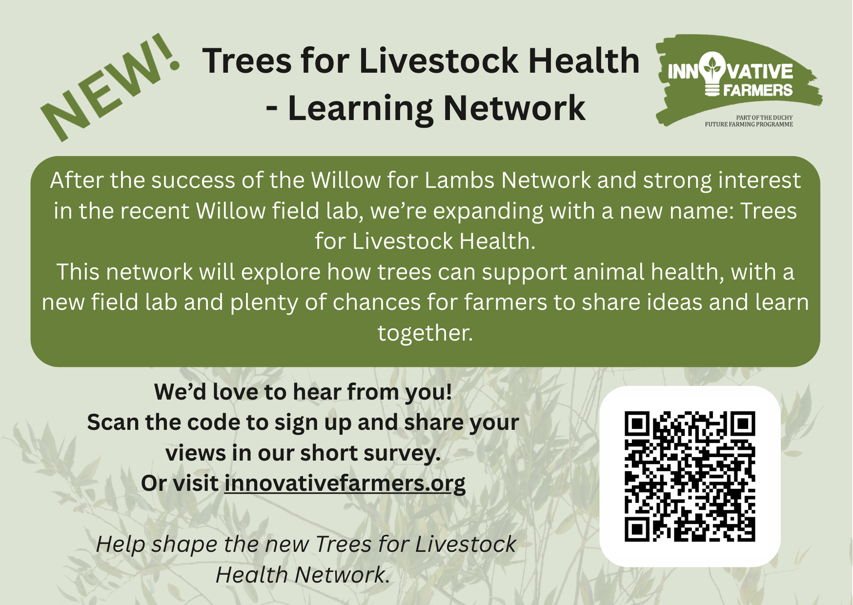 Following the success of the Willow for Lambs Network and the strong interest in the recent Willow for lambs field lab, we're expanding this network with a new name: